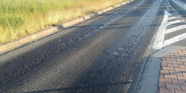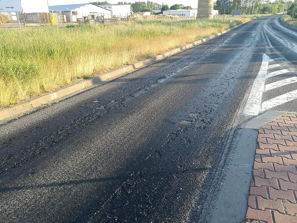 Słońce rozpuściło asfalt na obwodnicy Witnicy. Odcinek, z którego spłynęła nawierzchnia, został zamknięty dla ruchu.