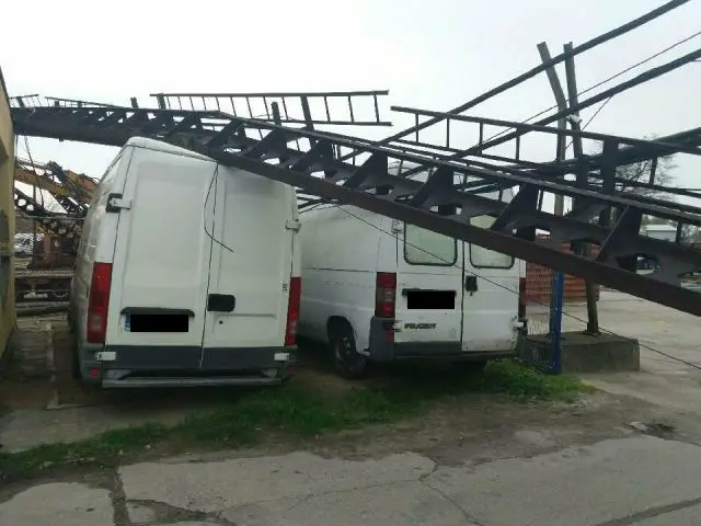 Koparka pociągnęła konstrukcję przyczepioną do budynku. to była linia energetyczna umieszczona w metalowej konstrukcji nad drogą. Po zerwaniu konstrukcja runęła na budynek, samochody i stróżówkę. Na miejsce przyjechała policja. – Na szczęście nikomu nic się nie stało- mówi nadkom. Marek Waraksa, naczelnik gorzowskiej drogówki.