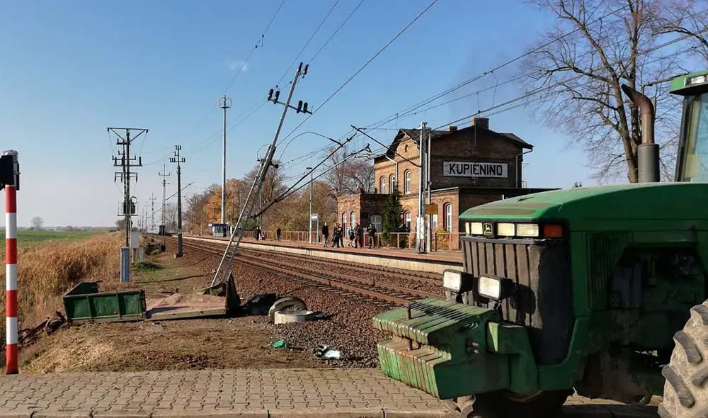 Do zdarzenia doszło w środę, 7 listopada, w Kupieninie (pow. świebodziński). Kierujący ciągnikiem wjechał na przejazd kolejowy i wtedy zgasł mu silnik. Pociąg relacji Berlin-Warszawa roztrzaskał przyczepę. Kierowcy nic się nie stało.