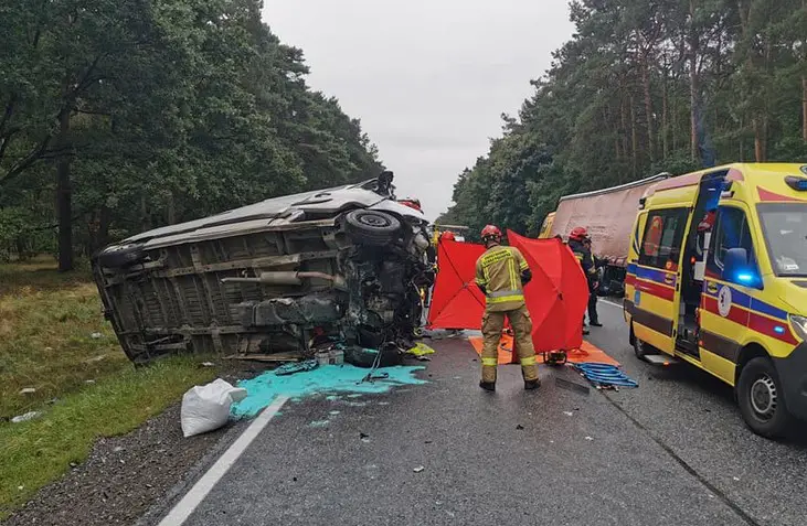 Do tragicznego wypadku doszło w poniedziałek, 23 sierpnia, na drodze w miejscowości Cierpice. Jak ustalili policjanci, kierujący oplem busem chcąc uniknąć uderzenia w tył hamującej osobówki zjechał na przeciwległy pas ruchu. Tam zderzył się z ciężarowym mercedesem. Po zderzeniu bus odbił się od ciężarówki i uderzył w fiata.