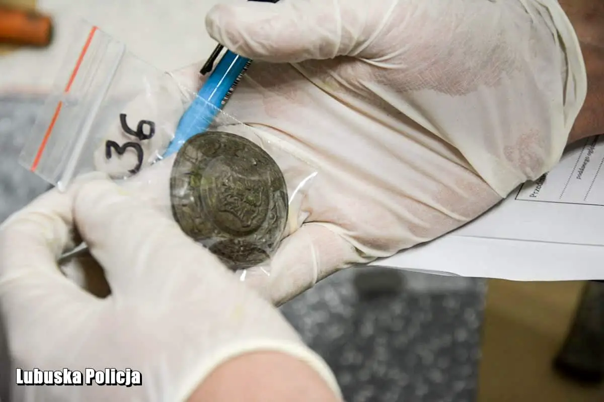 Kryminalni z Krosna Odrzańskiego i Gubina zatrzymali mężczyznę, który za pomocą wykrywacza metali szukał bez zezwolenia zabytków w ziemi. Funkcjonariusze zabezpieczyli blisko 130 wydobytych przez niego przedmiotów, które poddane zostaną ocenie biegłego. Policjanci znaleźli także w miejscu jego zamieszkania marihuanę i krzewy konopi.