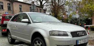 Zielona Góra. Zaparkował Audi na… murku. Kierowca z pasażerami uciekli (ZDJĘCIA)
