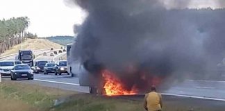 Pożar autobusu krwiodawstwa pod Zieloną Górą. Kierowca sam zaczął gasić