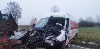 Poważny wypadek pod Słubicami. Bus roztrzaskał się o ciągnik z pługiem