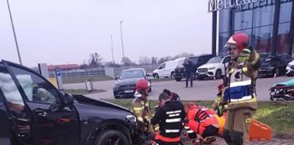 Wypadek motocyklistki. Zderzyła się z fiatem. Ranna kobieta trafił do szpitala...