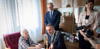 Janina Kuczyńska skończyła 100 lat. Z okazji setnych urodzin wizytę złożył jej wojewoda lubuski Marek Cebula i prezydent Zielonej Góry Marcin Pabierowski.