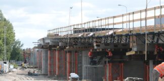 Widać postęp na budowie nowego wiaduktu na Zjednoczenia. Wstępny harmonogram zakłada koniec prac w grudniu. To ma pozwolić szybciej zając się budowa zachodniej nitki.
