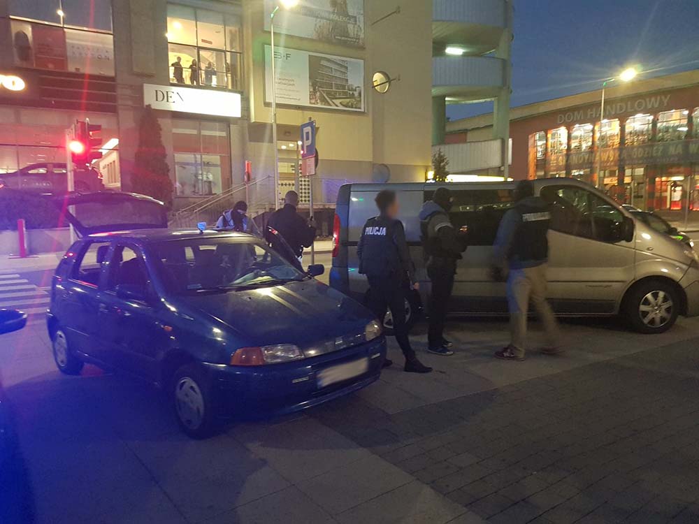 Wiadomo, że policjanci w kominiarkach zatrzymali fiata punto. Samochód stał na chodniku koło galerii Grafit. W aucie były wybite szyby. Portal poscigi.pl ustalił, że doszło do zatrzymań, ale nie wiadomo ilu osób.