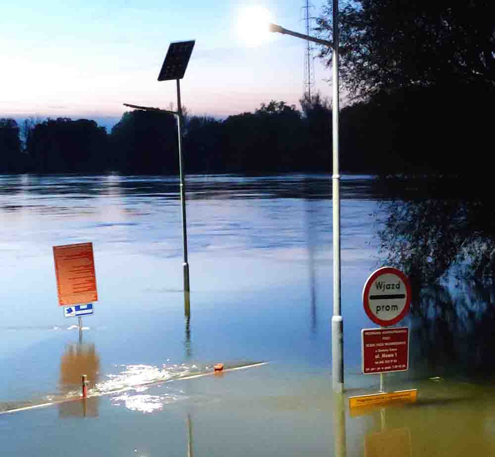 Woda jest przerażająco wysoka. Stan wody podnosi się od kilku dni ponieważ przez województwo lubuskie przechodzi wysoka fala na Odrze. Rzeka już dawno przekroczyła stany alarmowe. Nie działają promy.
