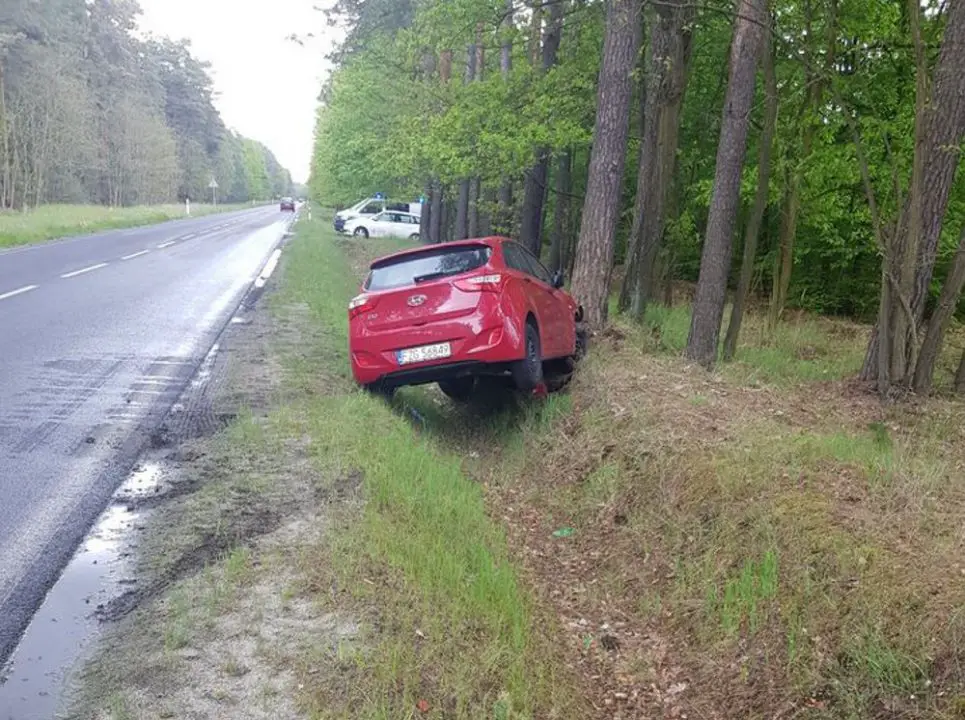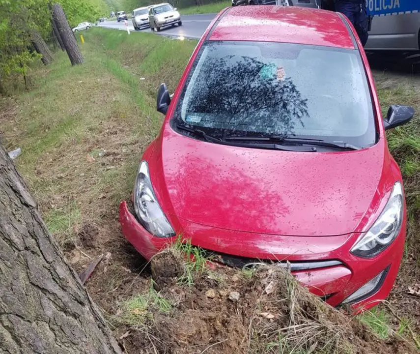 Poszkodowana kierująca hyundaiem wylądowała w rowie. Na szczęści nic się je nie stało.