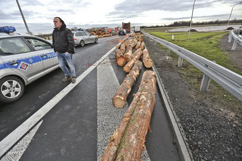 Jedna z metalowych barierek wbiła się do kabiny cudem mijając kierowcę ciężarówki. Drewno wypadło z naczep rozsypując się na jezdniach. – Na szczęście przyspieszyłem widząc to wszystko, gdybym tego nie zrobił to drewna zgniotłyby mnie w aucie – opowiada Krzysztof Jarnot z Zielonej Góry. Na jego opla upadła lampa ,,skoszona” przez ciężarówkę.