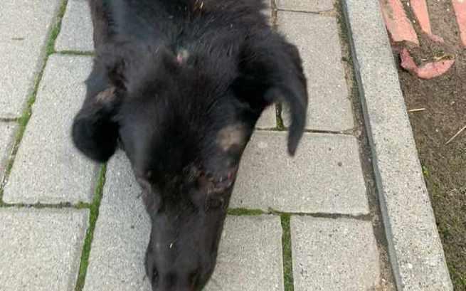 Czarny, skatowany młody psiak został znaleziony na drodze zakrwawiony, ledwo żywy, ogromnie cierpiący. Jego widok dosłownie łamał serce i budził tak wielką wściekłość, że trudno było to ująć w słowa. Obornicka policja szuka sprawcy.