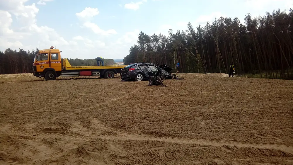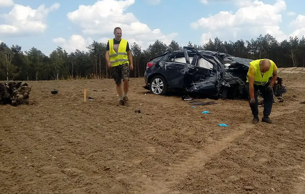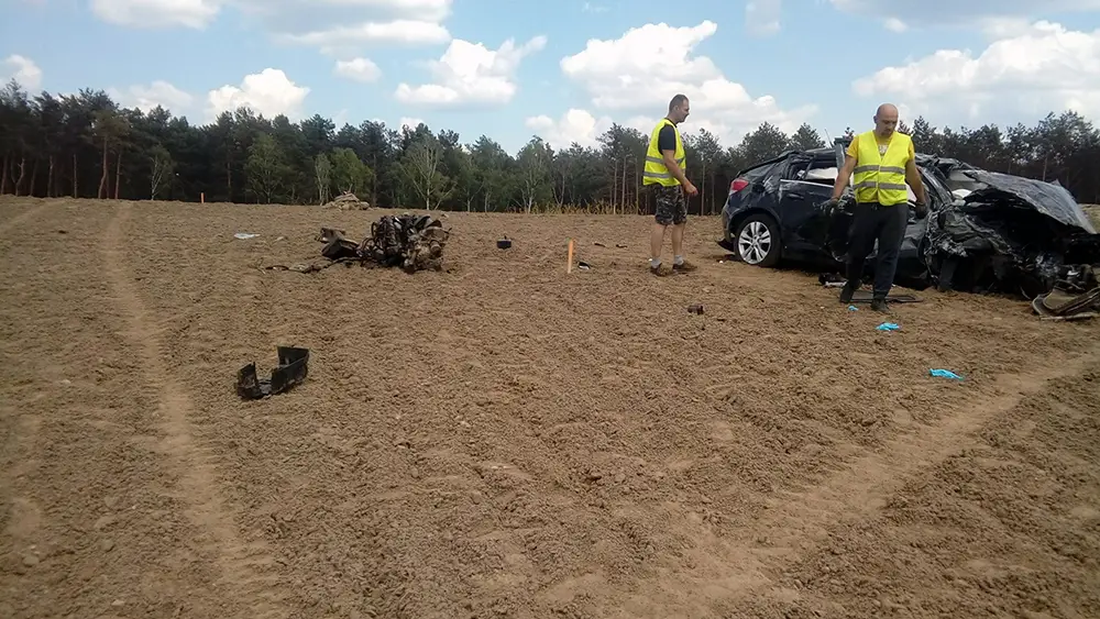 Wiadomo, że chevrolet jechał w kierunku Nowej Soli. Rozpędzone auto wypadło z drogi i z ogromną siłą uderzyło w betonowy wiadukt w budowie. Prędkość auta była ogromna. Chevrolet mógł jechać nawet 200 km/h. Uderzenie auta o wiadukt było potężne. Z chevroleta nic nie zostało. Samochód w dodatku wyleciał na wzniesienie za wiaduktem i tam upadł. Kierowca zginął na miejscu.