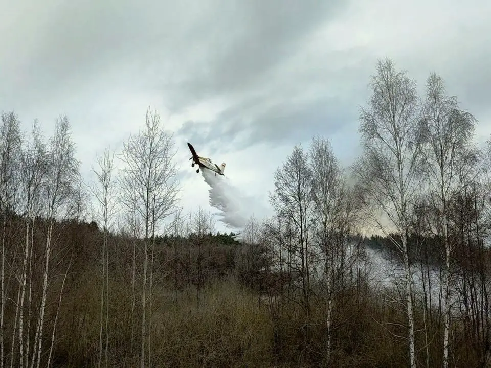 Na ul. Dąbrowskiego zorganizowano punkt czerpania wody z pobliskiego hydrantu. Strażaków z góry wspierał samolot gaśniczy, który wykonał trzy zrzuty wody.