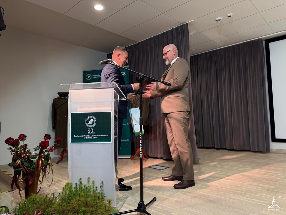 W imieniu prezydenta Marcina Pabierowskiego, leśnikom pogratulował wiceprezydent Paweł Tonder. – Cieszę się, że mogę uczestniczyć w tej wyjątkowej uroczystości, jubileuszu 80-lecia RDLP w Zielonej Górze. Ta instytucja na trwałe wpisała się w krajobraz i tożsamość naszego miasta. Wasza praca zasługuje na najwyższe uznanie – mówił Tonder. I uzupełniał: – Państwa praca to m.in. kształtowanie ekosystemu. To realizowane projekty z zakresu adaptacji lasów do zmian klimatu, transgraniczna ochrona przeciwpożarowa, troska o zachowanie bioróżnorodności. Wasza działalność jest jednym z filarów rozwoju naszego miasta i regionu. Od 2001 r. posiadacie międzynarodowy certyfikat dobrej gospodarki leśnej. Lasy są integralną częścią Zielonej Góry, zielonymi płucami miasta, wyróżnikiem na mapie Polski. Ponad połowa powierzchni miasta to lasy – podkreślił Tonder.