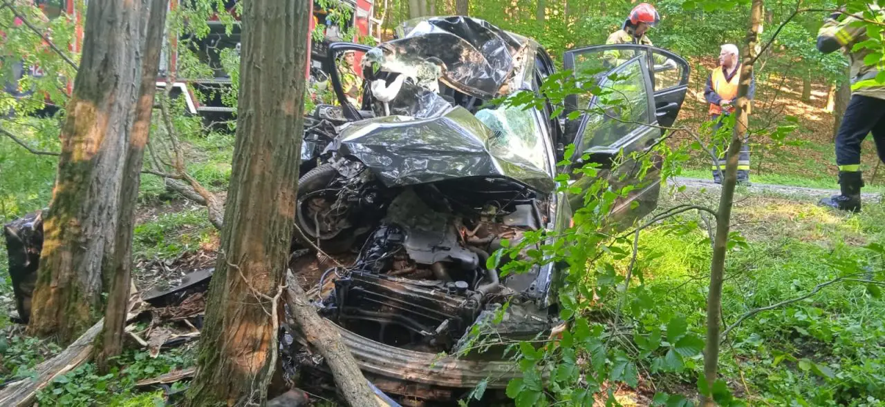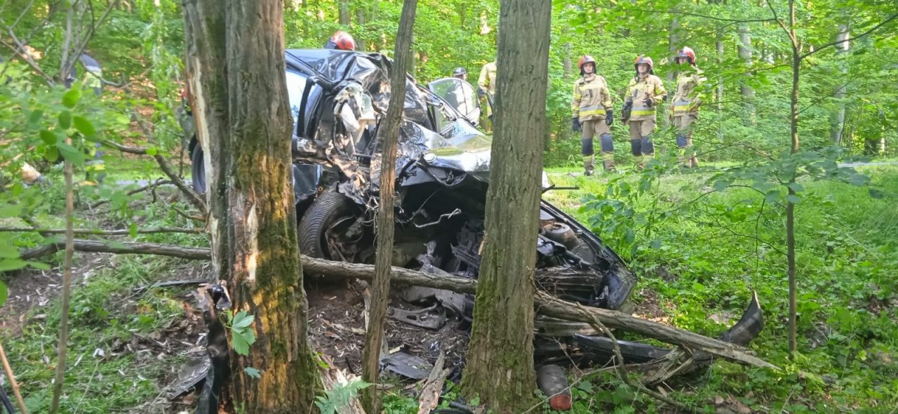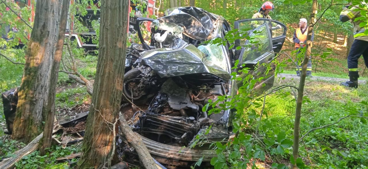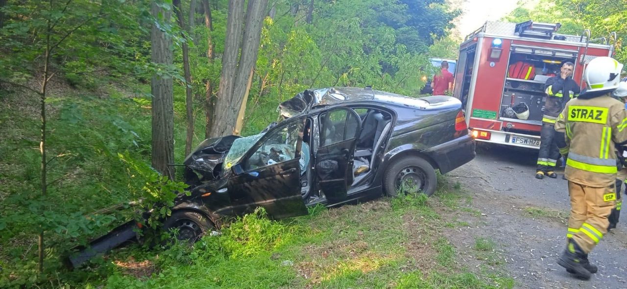 Do poważnego wypadku doszło o godz. 17.50. Na miejsce szybko dotarły świebodzińska straż pożarna. Bam uderzyło w drzewo z taką siłą, że z auta niemal nic nie zostało. Na miejsce dojechały również OSP Jemiołów i Poźrzadło oraz świebodzińska policja.