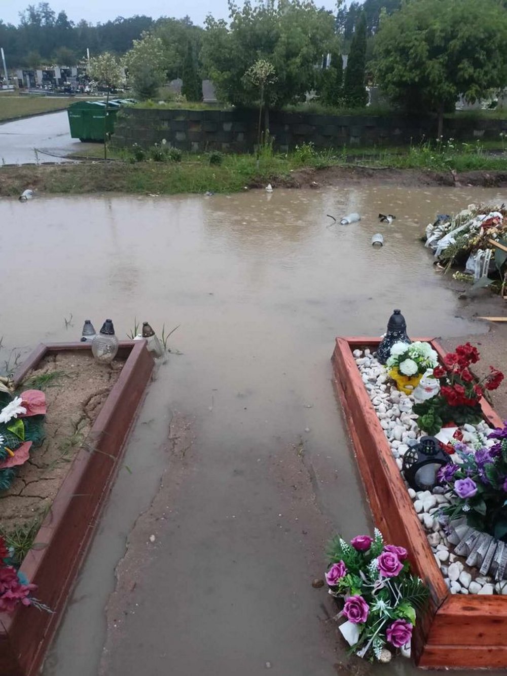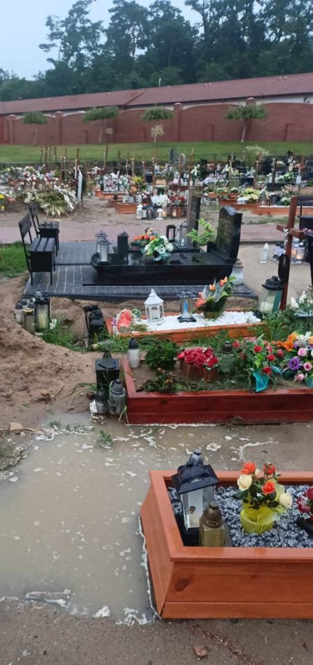 Ludzie są bezsilni. Po deszczach mogą tylko załamywać ręce. Nowy cmentarz wygląda jak jezioro, a groby zapadają się. – Od dłuższego czasu po najmniejszym deszczu groby na nowym cmentarzu są zalewane przez deszcz i zapadają się. Wielokrotnie było zgłaszane do administracji aby cokolwiek z tym zrobili, jakieś odpływy, dojścia do studzienek ale zlewają prośby ludzi mówiąc że nic nie zrobią bo to wina deszczu… – pisze czytelniczka.