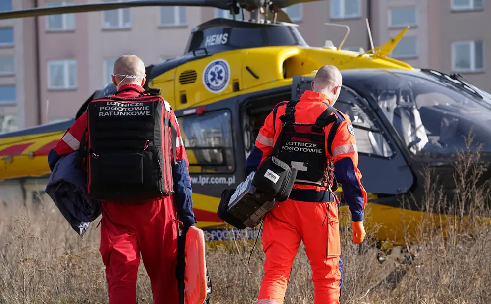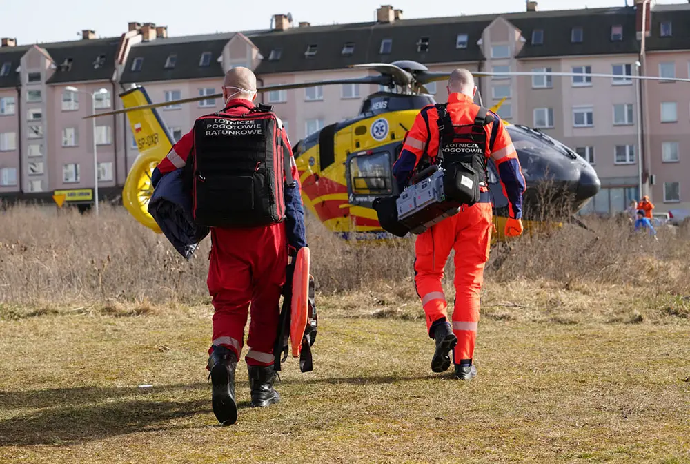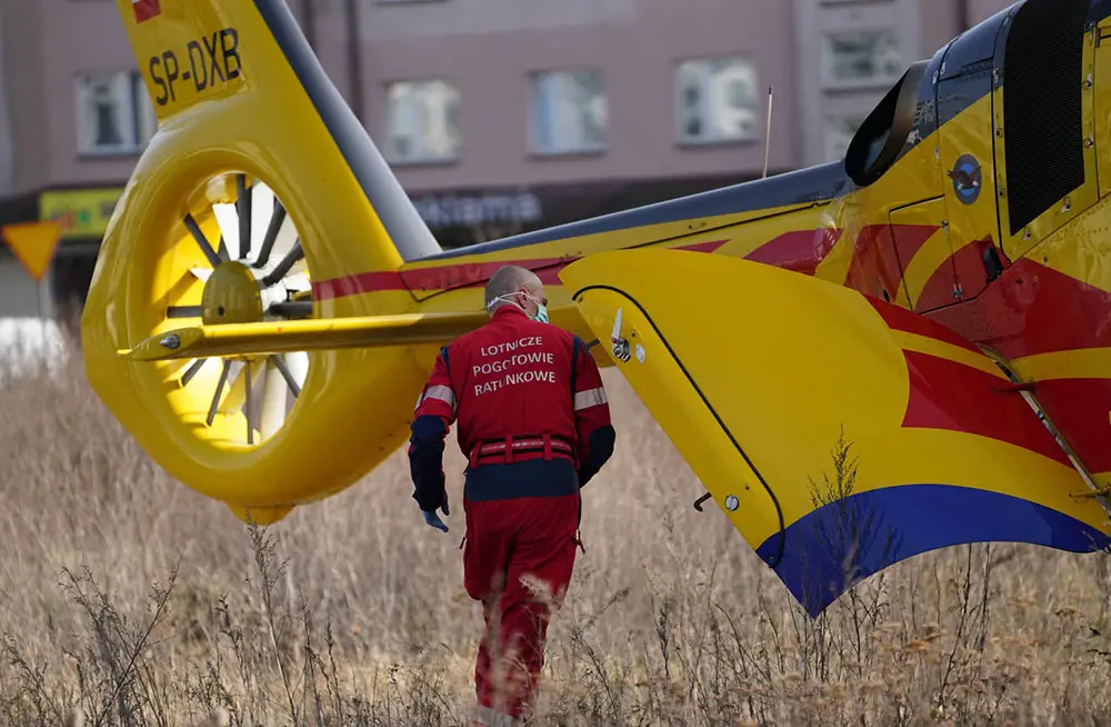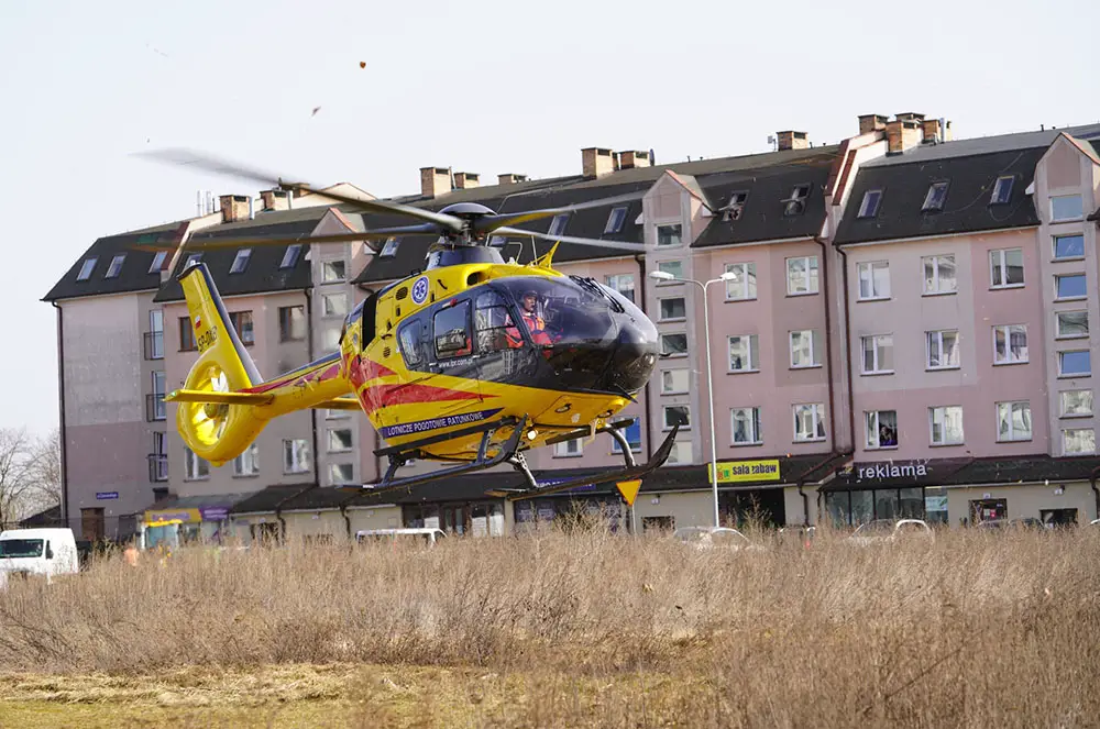 Śmigłowiec LPR wylądowała na przy ulicach Wędkarskiej i Żeglarskiej. Załoga ruszyła na pomoc choremu. Niestety okolica była tak zaśmiecona, że pilot musiał ja sprzątnąć, żeby bezpiecznie wystartować.