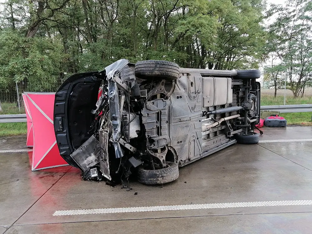 Ze wstępnych ustaleń policjantów wynika, że 20-letni kierujący mercedesem, jadąc lewym pasem drogi wpadł w poślizg i stracił panowanie nad kierownicą. Mercedes uderzył w bariery rozdzielające jezdnie i przewrócił się na prawy bok. Pojazdem jechało 9 osób (kierujący i 8 pasażerów).