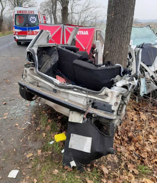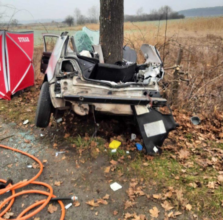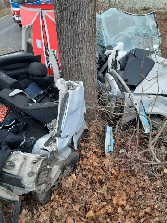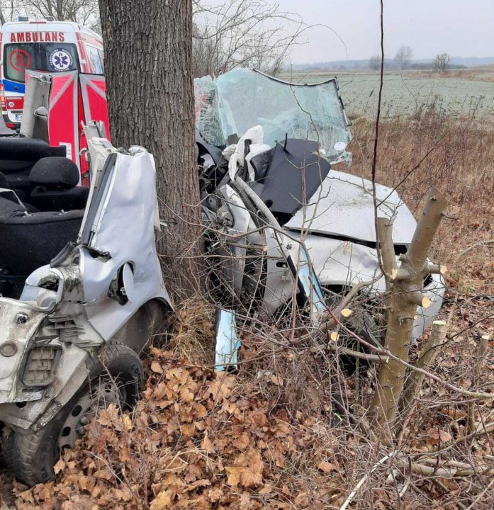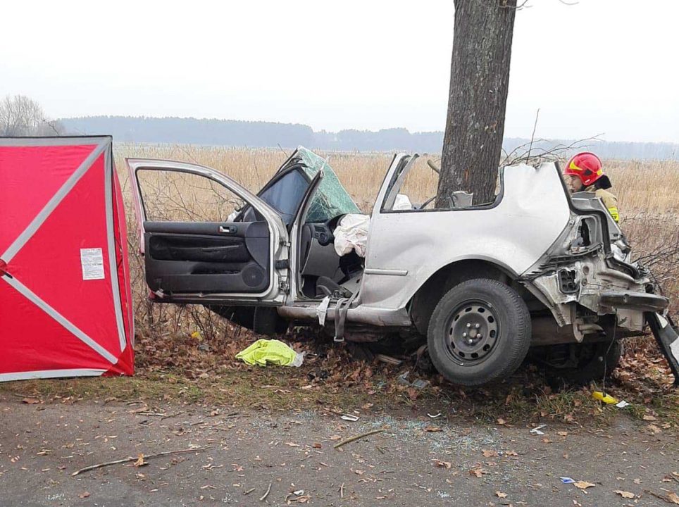 Do tragicznego wypadku doszło w piątek, 1 stycznia, na drodze Sarbia-Czarnowo koło Krosna Odrzańskiego. Volkswagen bokiem uderzył w drzewo dosłownie owijając się na pniu. Na miejscu zginął 27-letni pasażer. Niestety 20-letni kierowca zmarł w szpitalu. Trwa walka o życie 18-latka.