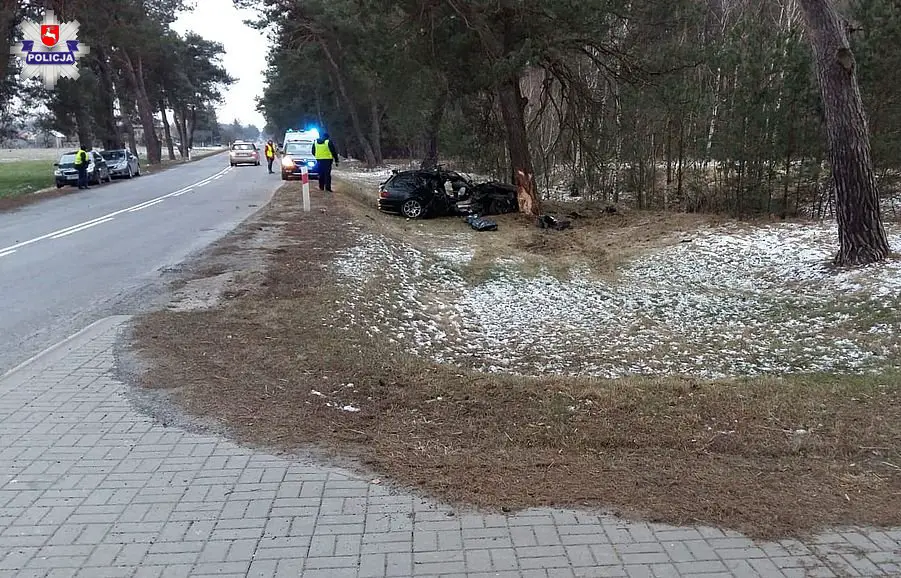 Do śmiertelnego wypadku doszło w niedzielę, 24 lutego, w miejscowości Świerszczów (woj. lubelskie). 21-latek kierujący bmw, stracił panowanie nad autem i następnie uderzył w drzewo. Zginał 24-letni pasażer. Kierowca był pijany. Grozi mu teraz kara do 12 lat więzienia.