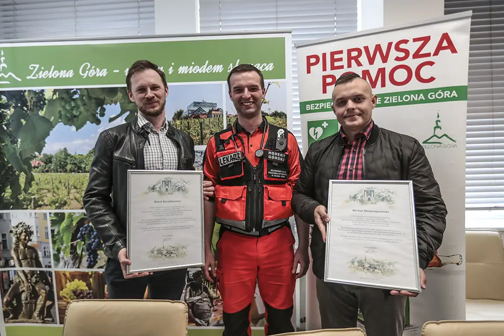 Wszystko wydarzyło się w sobotę, 23 marca, na ul. Wyszyńskiego. Doszło do nagłego zatrzymania krążenia u 39-letniego mężczyzny. Mężczyznę uratowali lekarz Karol Karaśkiewicz i kierowca autobusu MZK Michał Niemczynowski. Przydał się defibrylatora AED z autobusu MZK. W środę, 17 kwietnia, za skuteczną akcję podziękował Janusz Kubicki, prezydent Zielonej Góry.