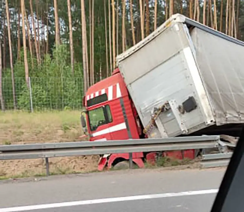 Kierowca ciężarówki uderzył w barierki energochłonne rozrywając je. Ciężarówka wypadła z drogi do rowu.