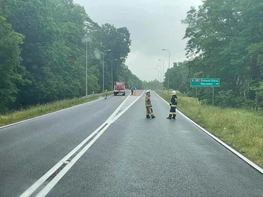 We wtorek, 22 czerwca, rozlany olej napędowy spowodował poważne problemy na trasie pod Krosnem Odrzańskim w kierunku Zielonej Góry.