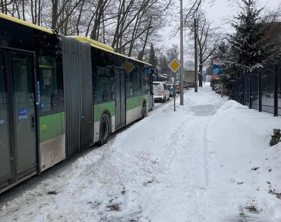 Jak informują nas kierowcy, korek na ul. Jędrzychowskiej ma już ponad kilometr długości. Ciężarówka jadąc pod górę utknęła koło skrętu w ul. Browarną. Kierowca nie daje rady podjechać. Koła ciężarówki boksują na oblodzonej drodze.