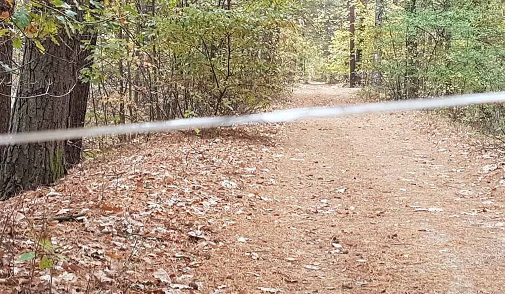 Linka została rozciągnięta na ścieżce leśnej od ul. Konwaliowej. – Około 700 m od wejścia na leśną ścieżkę licząc od szlabanu – pisze nasz Czytelnik.