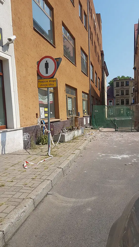 Kawałki ciężkich płyt elewacji odpadają ze szczytu budynku. Elementy muru upadają na chodnik i drogę. Pod budynkiem przechodzą ludzie. Kierowcy parkują tam swoje samochody. – Niestety, nikt z tym nic nie robi – pisze Łukasz. Dodaje, że oby tylko nie doszło do nieszczęścia, po którym dopiero sprawą zajmą się odpowiednie służby.