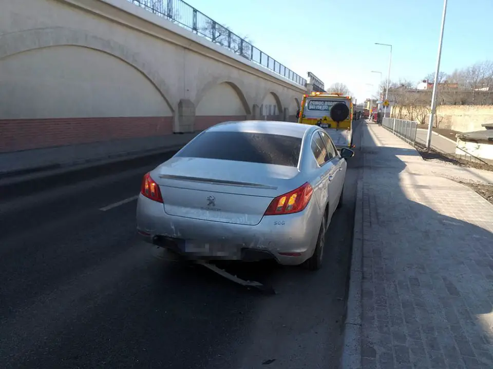 Kierujący volkswagenem jechał ul. Nadbrzeżną. Nie zauważył hamującego kierowcy peugeota. Nie zdążył zahamować i uderzył w tył peugeota.