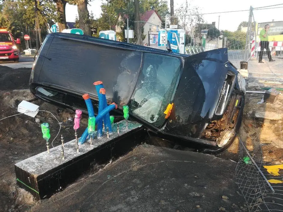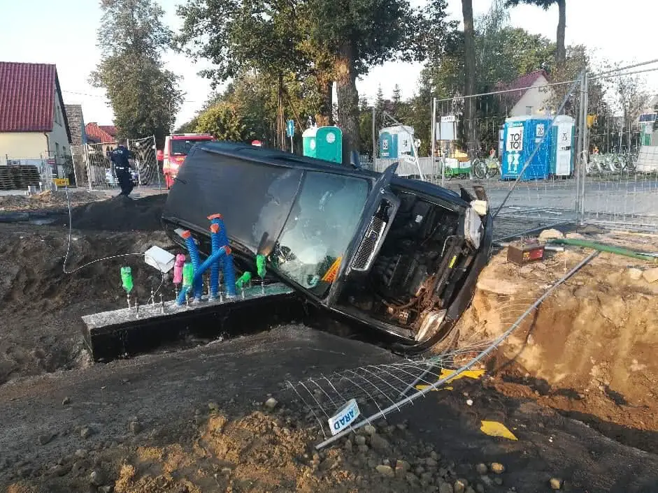 Do zdarzenia doszło w sobotę, 24 sierpnia, około godz. 2.00. Kierowca volvo wypadł z drogi i wpadł do wykopu na terenie budowy stacji ładowania autobusów MZK na ul. Grzybowej. Kierowca uciekł.