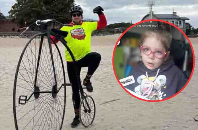 Łukasz Jęcz strażak z JRG2 z Zielonej Góry, jedzie bicyklem dookoła Polski dla swojej chorej córeczki Emilki. W niedziele, 4 października, skończy trasę.