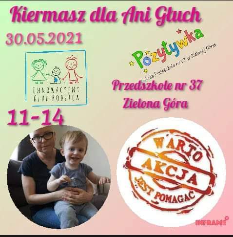 Wielki kiermasz na rzecz chorej na nowotwór złośliwy 44-letniej zielonogórzanki Anny Głuch, matki 4 dzieci odbędzie się w niedzielę, 30 maja w godz. 11.00-14.00 w przedszkolu przy ul. Węgierskiej 9.