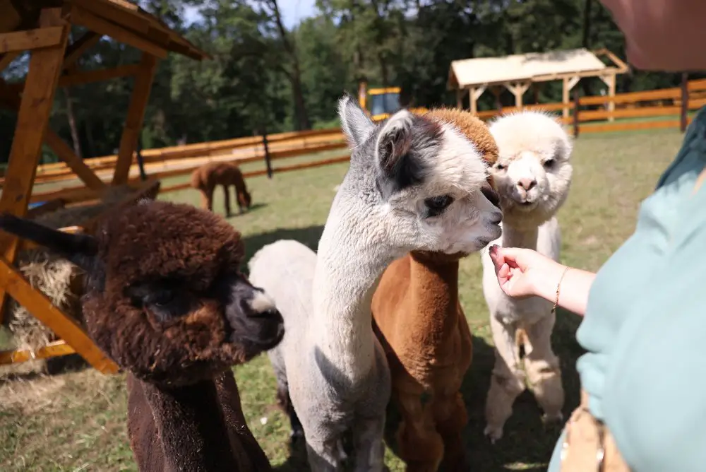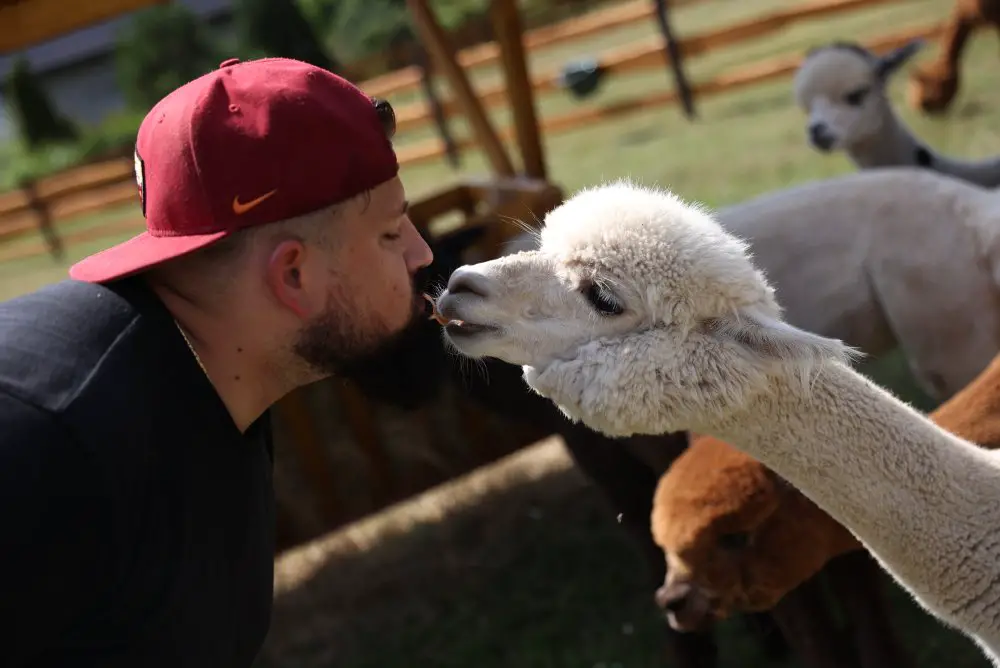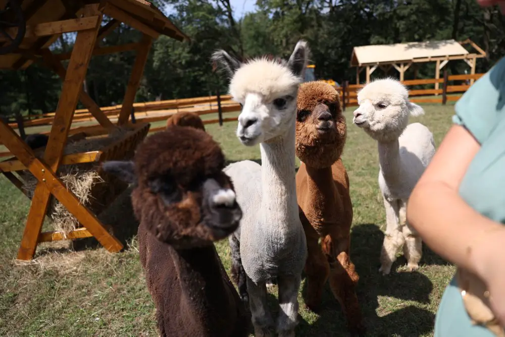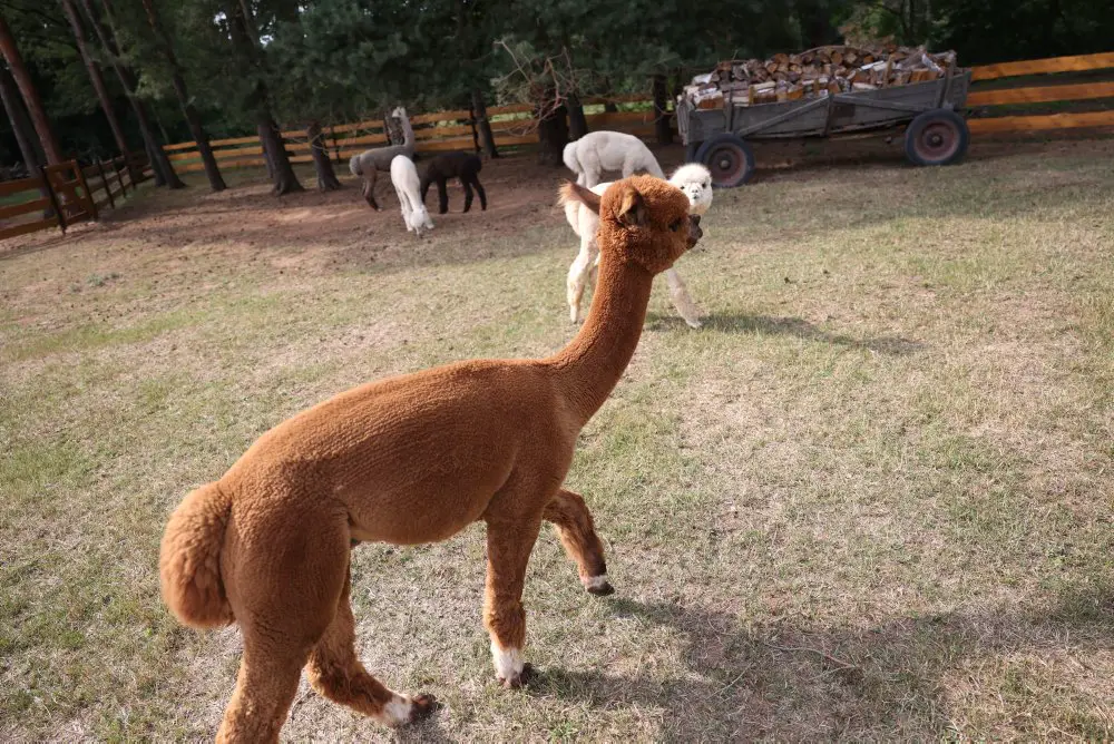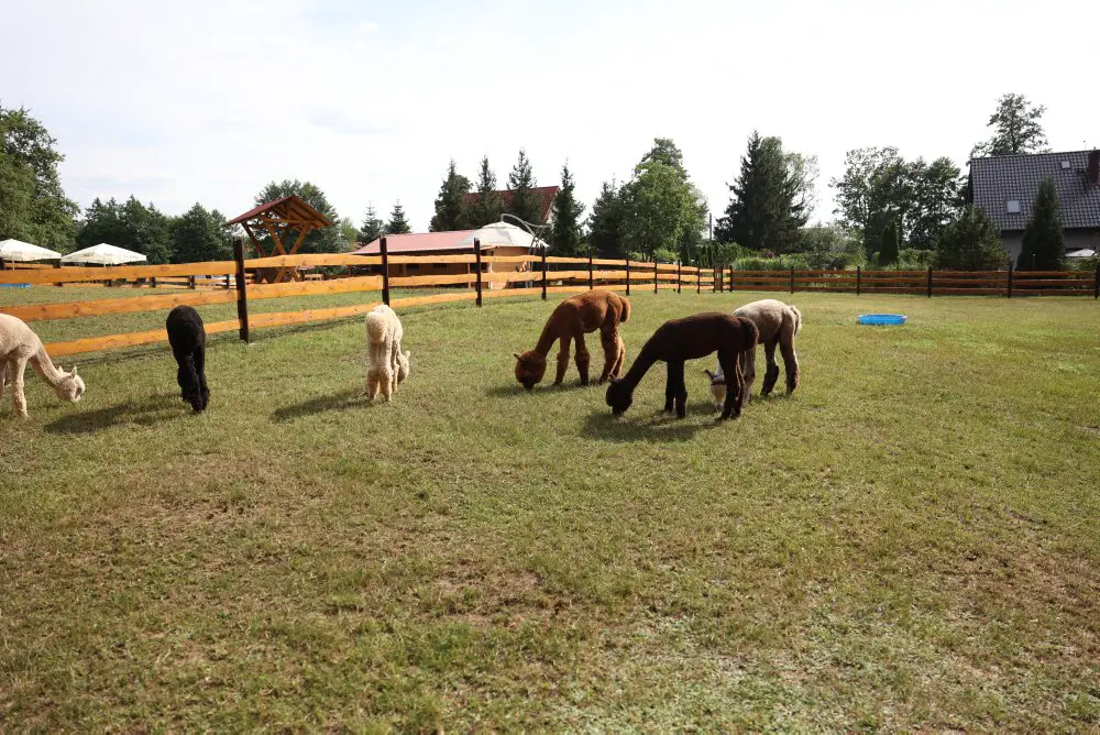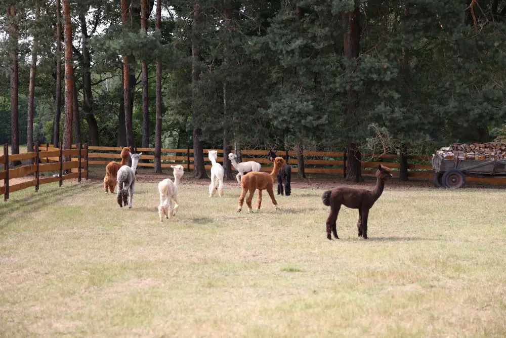 Ale uwaga. W zagrodzie biega osiem przepięknych, kochanych i przemiłych alpak. Są cudowne. – Przy nich czas staje w miejscu – mówi pani Kasia. Ma rację, alpaki można głaskać w nieskończoność. Już samo stanie przy alpakach jest wspaniałym i relaksującym uczuciem, a co dopiero możliwość głaskania. Cudowne.