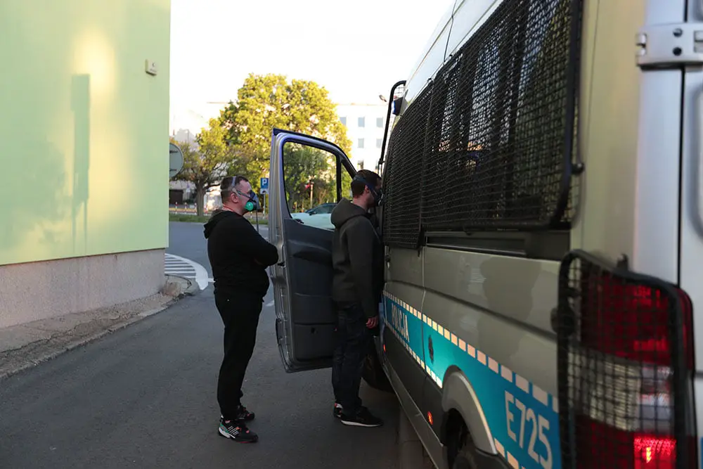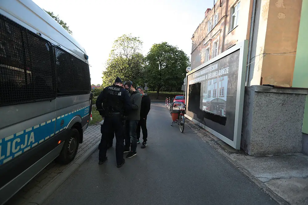 Kiedy skończyli zamalowywać billboard nadjechał policyjny radiowóz na sygnałach. Funkcjonariusze dostali informację o wandalach niszczących billboard. – Tak, to ja zamalowałem ten plakat – powiedział od razu Górski. Został spisany razem z ratownikiem medycznym M. Klimem, który również przyznał się do zamalowania billboardu.