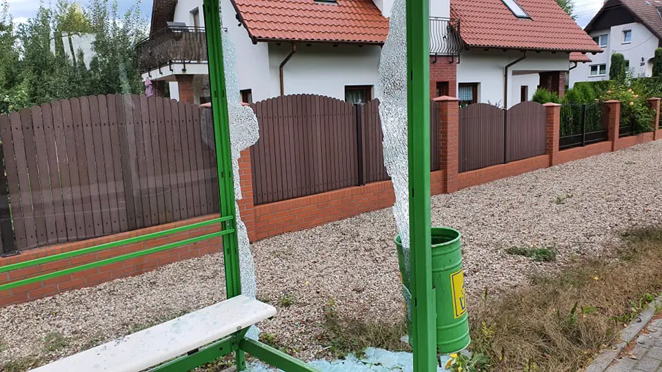 Wandal lub wandale wyżyli się na wiacie autobusowej przy ul. Mieczykowej. Postępując kompletnie bezmyślnie wybili szybę.