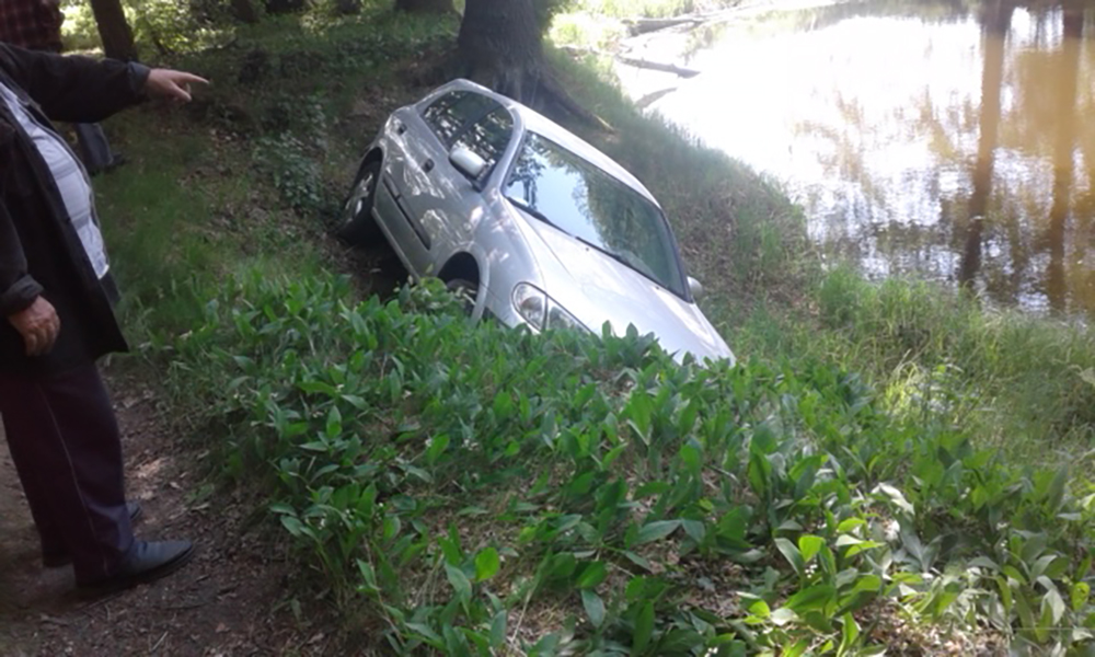 Wędkarz miał wielkie szczęścia, bo auto nie stoczyło się do wody. Gdyby wpadło do wody mogłoby dojść do nieszczęścia.