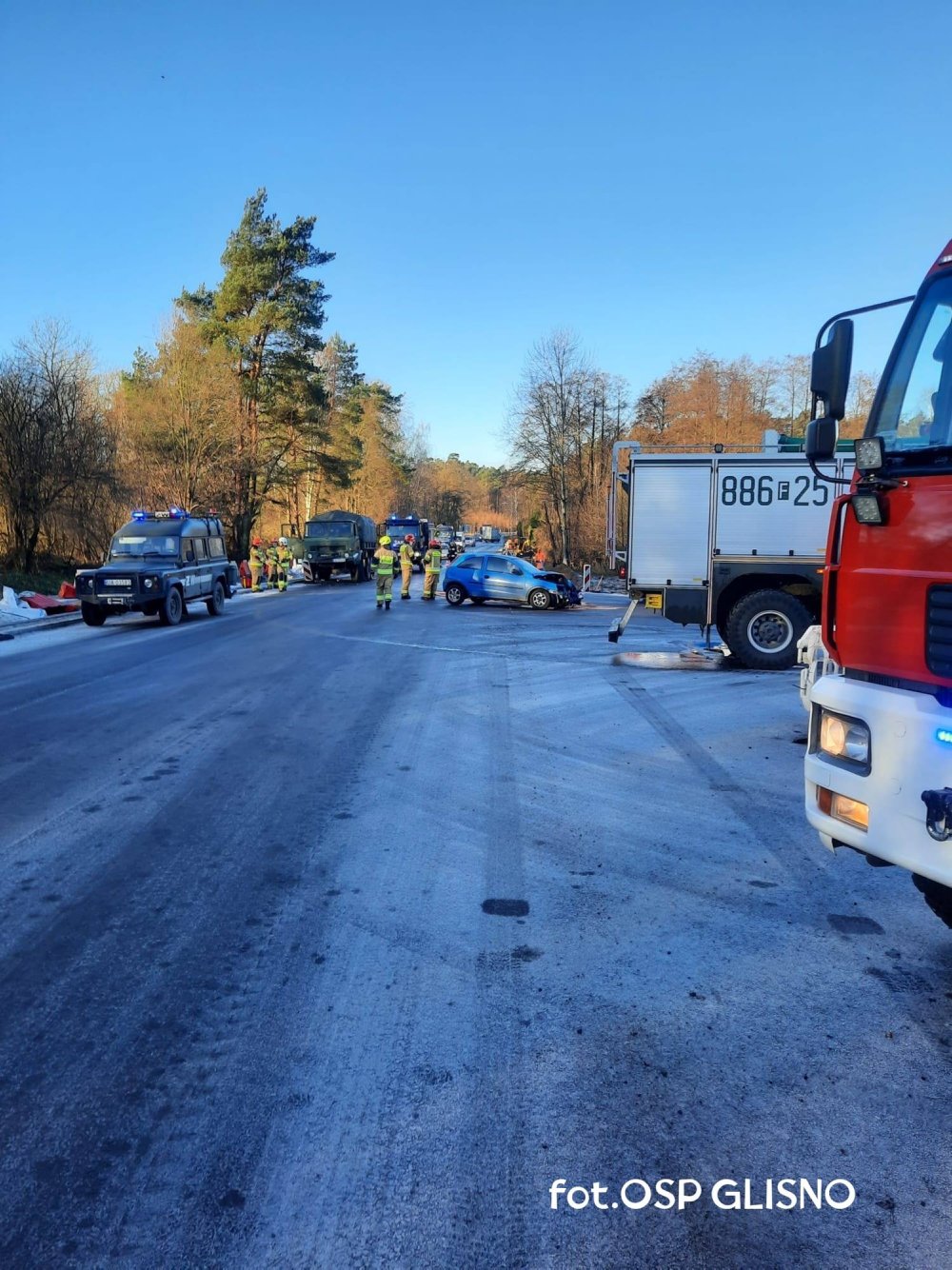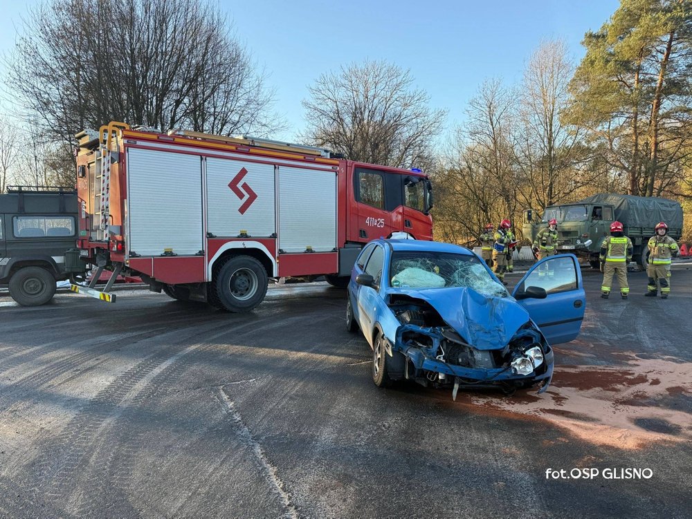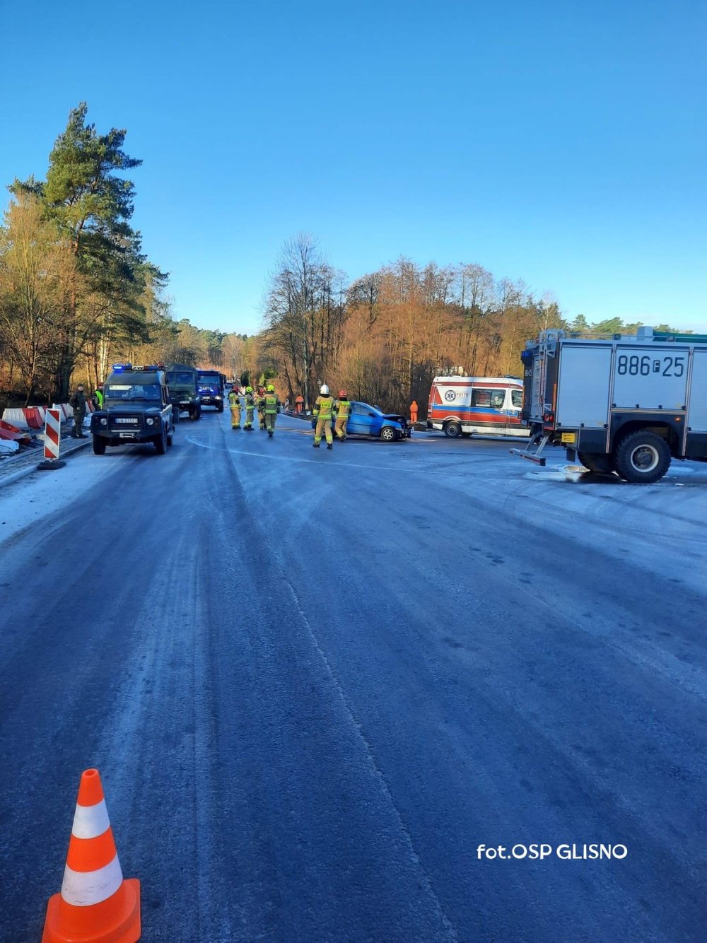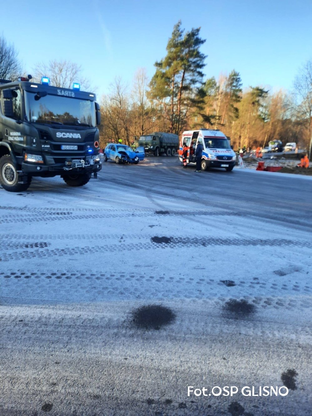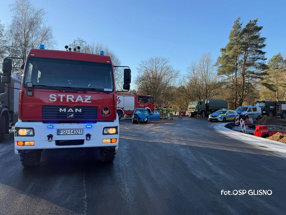 – W wyniku wypadku dwie osoby odniosły obrażenia. Strażacy udzielili im kwalifikowanej pierwszej pomocy, po czym poszkodowani zostali przekazani zespołowi ratownictwa medycznego – informuje OSP Glisno. Działania służb ratunkowych obejmowały zabezpieczenie miejsca zdarzenia, pojazdów pod kątem zagrożenia pożarowego oraz neutralizację wycieków płynów eksploatacyjnych.