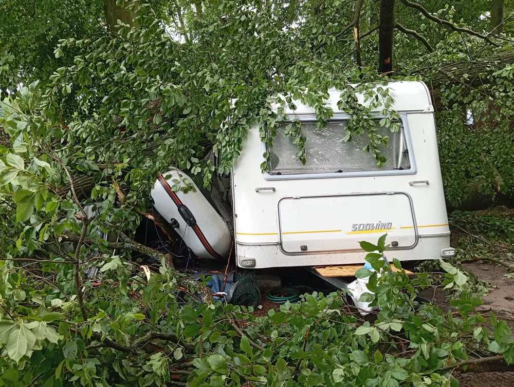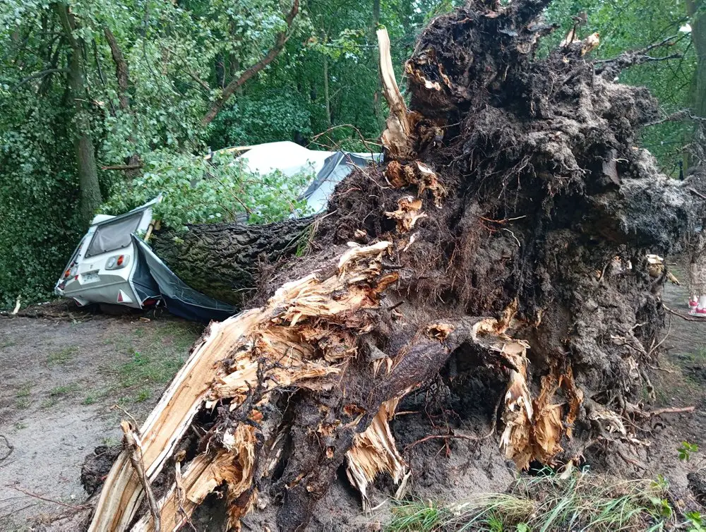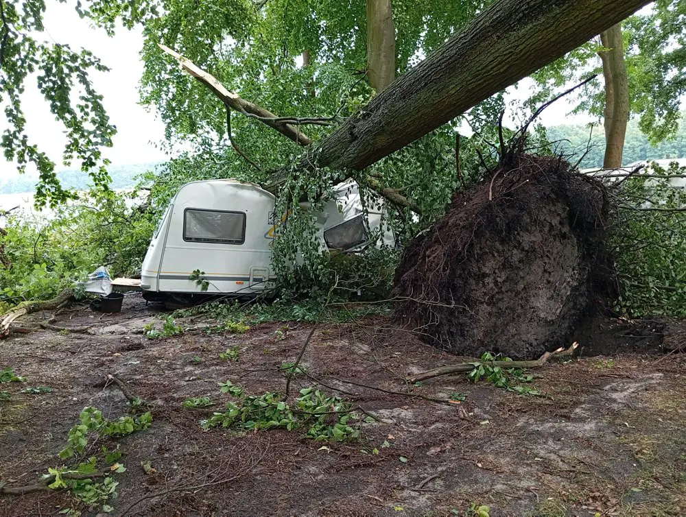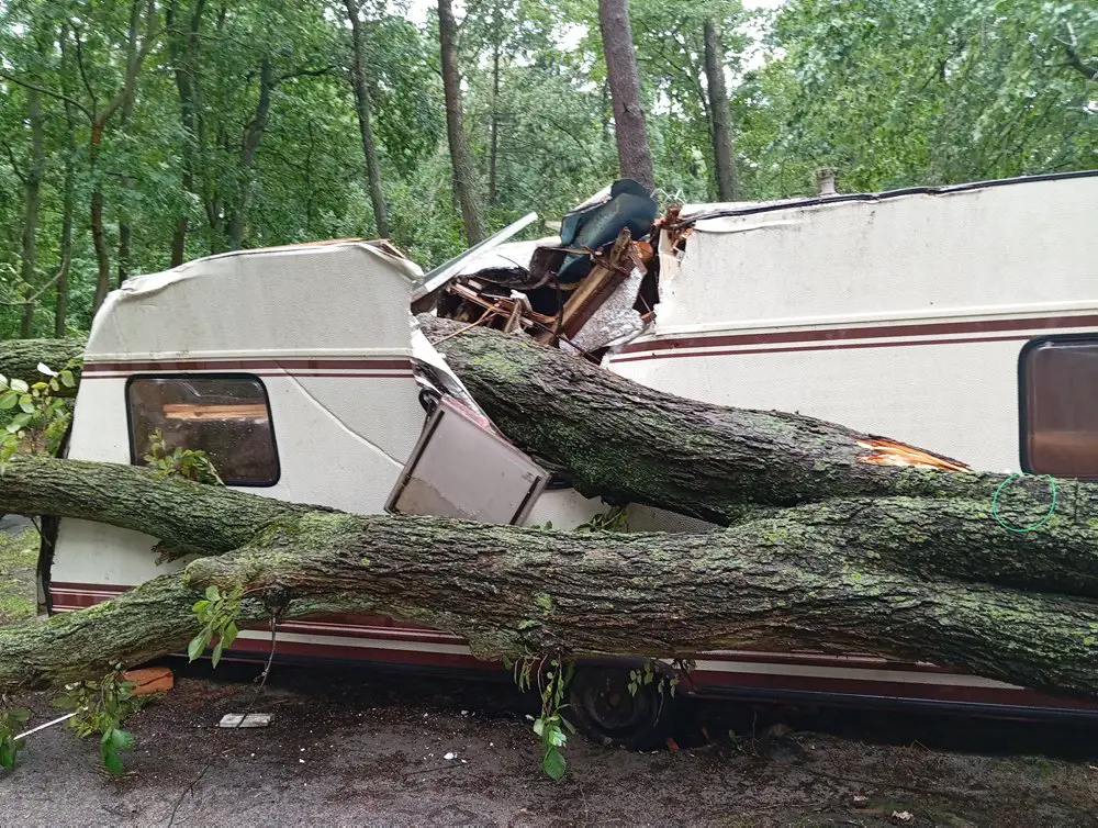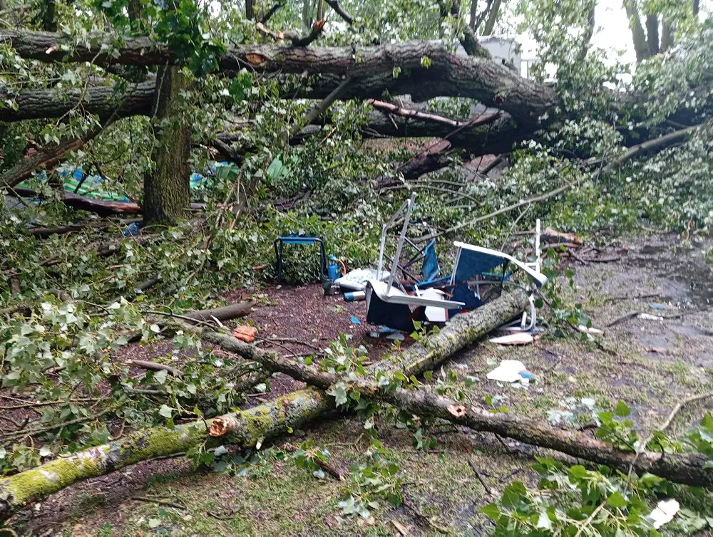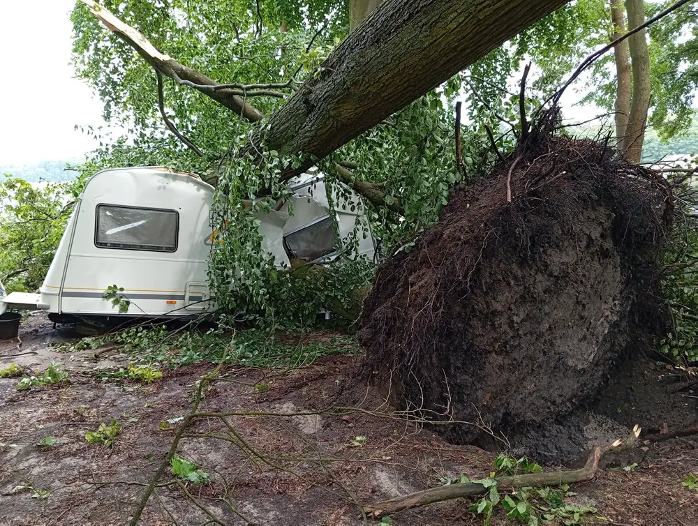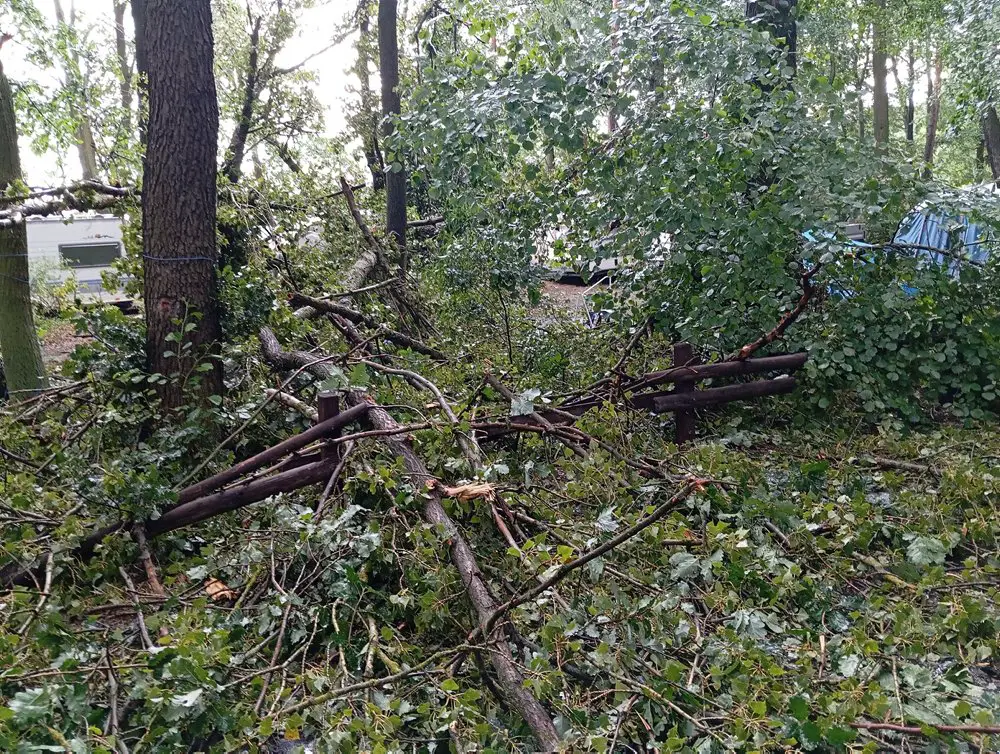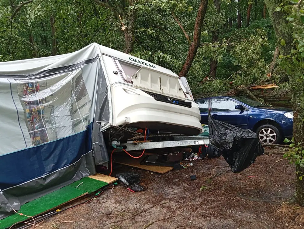 O zdarzeniu informuje WOPR Świebodzin. W środę nad jeziorem Niesłysz rozegrał się pogodowy armagedon. Podczas burzy z wichurą wiatr łamał drzewa jak zapałki. Potężne drzewo runęło na przyczepę kampingową. Dookoła wichura zrobiłe demolkę.