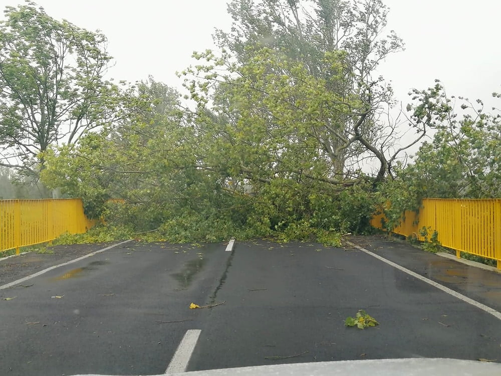 Około południa strażacy usuwali drzewo, które powalone wiatrem runęło na Placu Matejki na samochód i koparkę. Drzewo upadło też na samochody na ul. Wyszyńskiego oraz na Sobieskiego. Około godz. 11.00 konar wbił się w samochód jadący drogą w Ochli koło Skansenu. Ranny został kierowca forda.