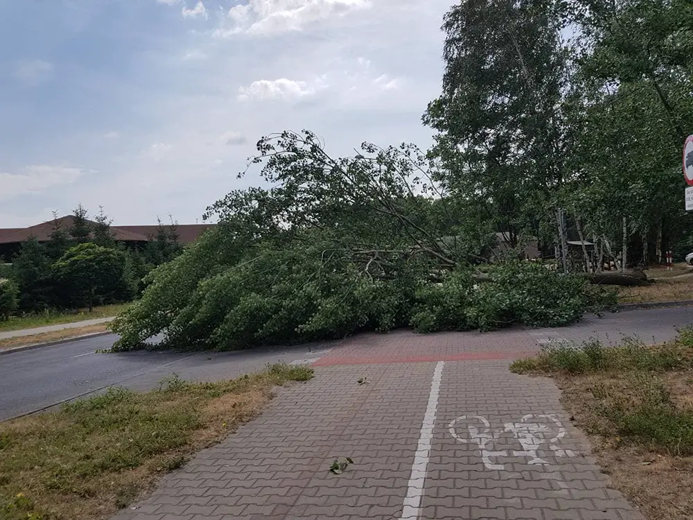 Godz. 18.00 W Zielonej Górze strażacy interweniowali 15 razy. To głównie powalone drzewa, złamane konary, pożary traw i nieużytków od linii wysokiego napięcia.