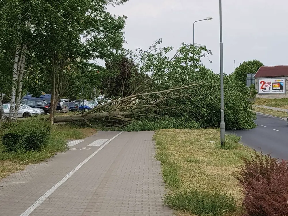 Wichura zaczęła się przed godz. 15.00. Wiatr był tak silny, że zaczął łamać drzewa. Duże drzewo upadło na os. Zacisze blokując dojazd do ul. Kokosowej. O godz. 16.00 drzewem zajęli się już zielonogórscy strażacy.
