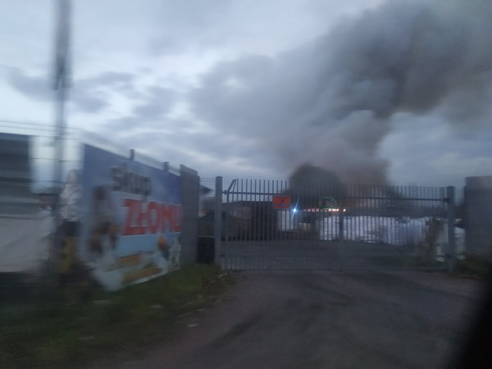 Na miejsce przyjechały wozy zielonogórskiej straży pożarnej. Zostały również ściągnięte posiłki z Krosna Odrzańskiego. Płonie drewniany dach budynku hurtowni spożywczej. Z ogniem walczy 18 jednostek straży pożarnej. Z daleka widać potężny słup dymu. Na miejscu widać ogień na budynku. Trwa walka z pożarem.
