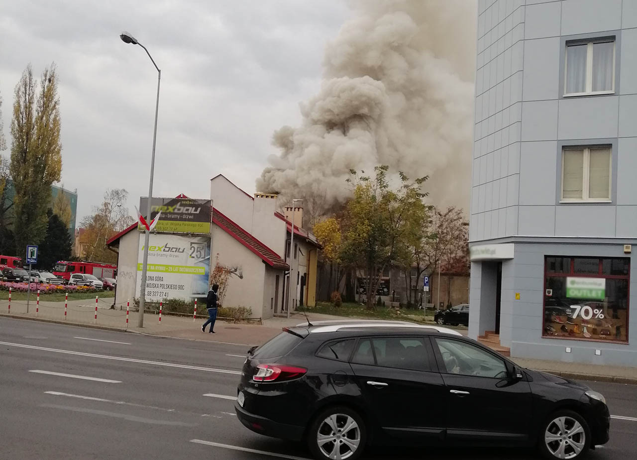 Pożar wybuchł na poddaszu, które składało się głównie z drewna. Bardzo szybko ogień się rozprzestrzenił, a gęsty, czarny dym unosił się nad lokalem. Do pożaru lokalu usługowego na ul. Przy Gazowni zostało wysłanych 5 wozów straży pożarnej oraz cysterna o pojemności 25 tys. litrów wody. Strażacy starają się ugasić pożar na poddaszu budynku. Miejsce zabezpiecza zielonogórska policja.