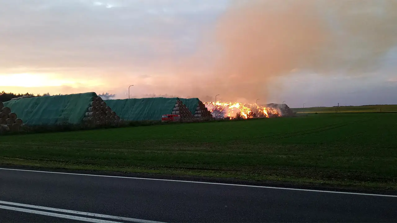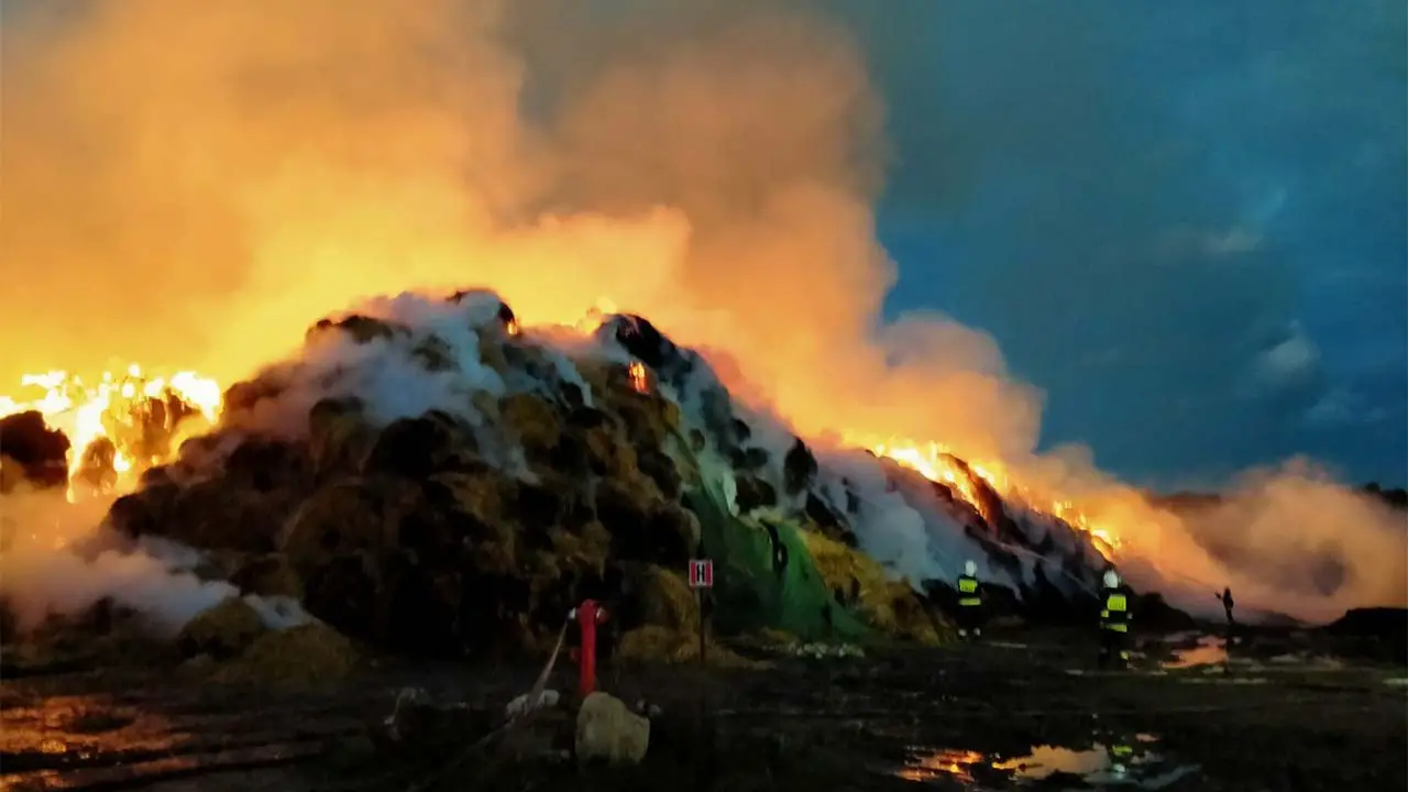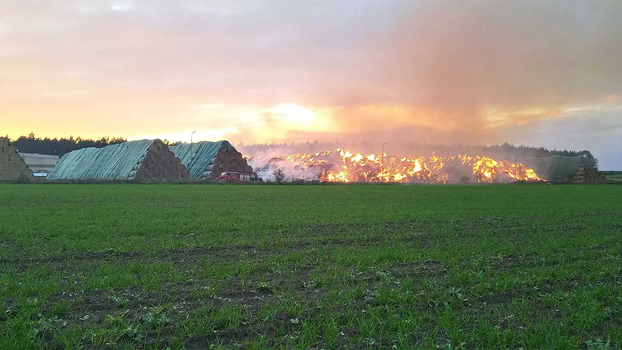 Około godz. 15:00 dyżurny przytockich strażaków otrzymał zgłoszenie o pożarze składowiska słomy. Pożar objął pięć stogów siana oraz pobliski budynek firmy, w którym składowany jest pelet.