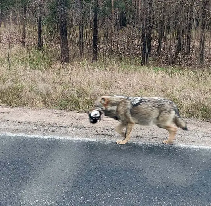 Pan Paweł w poniedziałek, 28 grudnia, w dzień zrobił niesamowite zdjęcia wilka, który niósł w paszczy głowę psa.