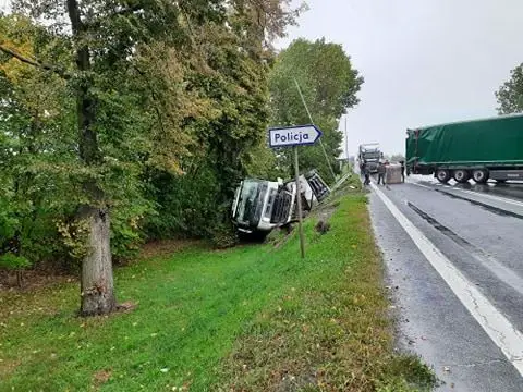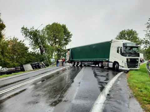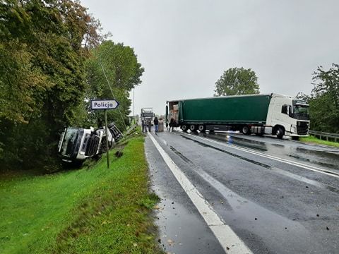 Do dwóch zdarzeń doszło w sobotę, 26 września, na drodze w Wilkowie koło Świebodzina. Jedna ciężarówka wypadła z drogi i przewróciła się na poboczu, druga uderzyła w bariery. Droga w Wilkowie jest zablokowana.