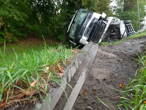 Kierowca ciężarówki jechał drogą w Wilkowie w kierunku Świebodzina. – Kierowca ciężarówki najprawdopodobniej nie zauważył hamującego przed nim samochodu osobowego – mówi dla poscigi.pl mł. asp. Marcin Ruciński, rzecznik policji w Świebodzinie. Chcąc uniknąć uderzenia w tył samochodu osobowego ostro skręcił i wtedy wypadł z drogi. Ciężarówka rozbiła barierki i przewróciła się na poboczu.